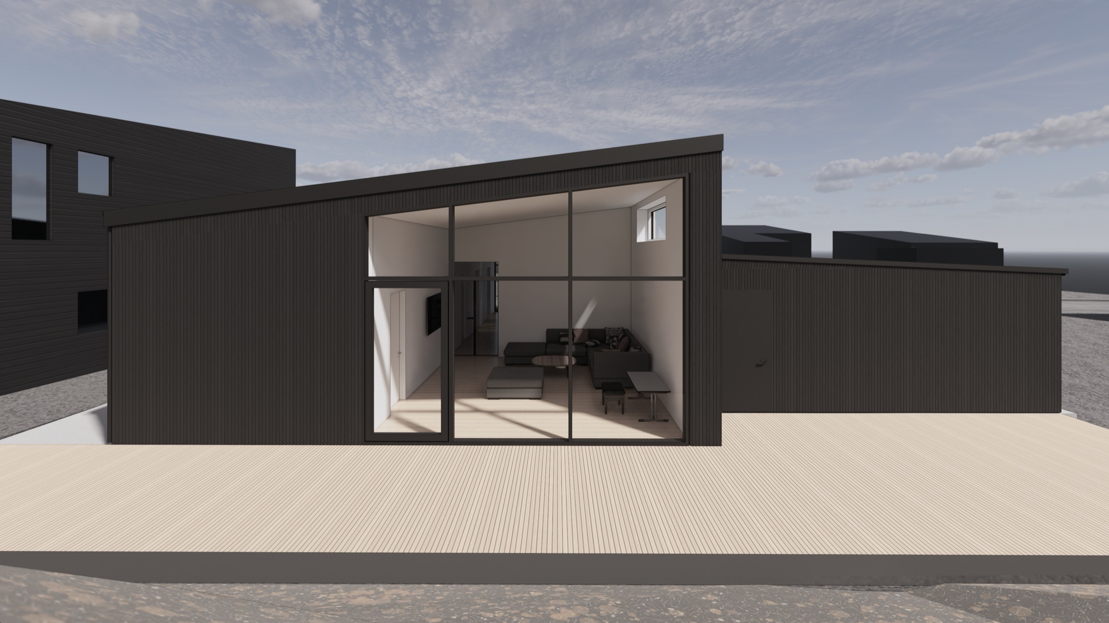 Vi arbejdede med åbne rumforløb, brede passager, klare funktionelle zoner og god kontakt mellem inde og ude.