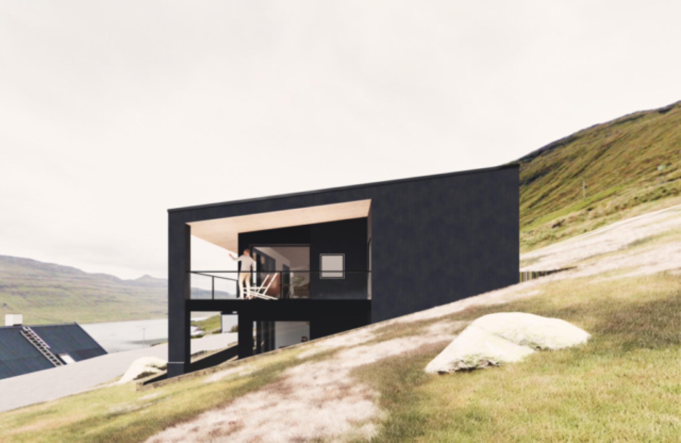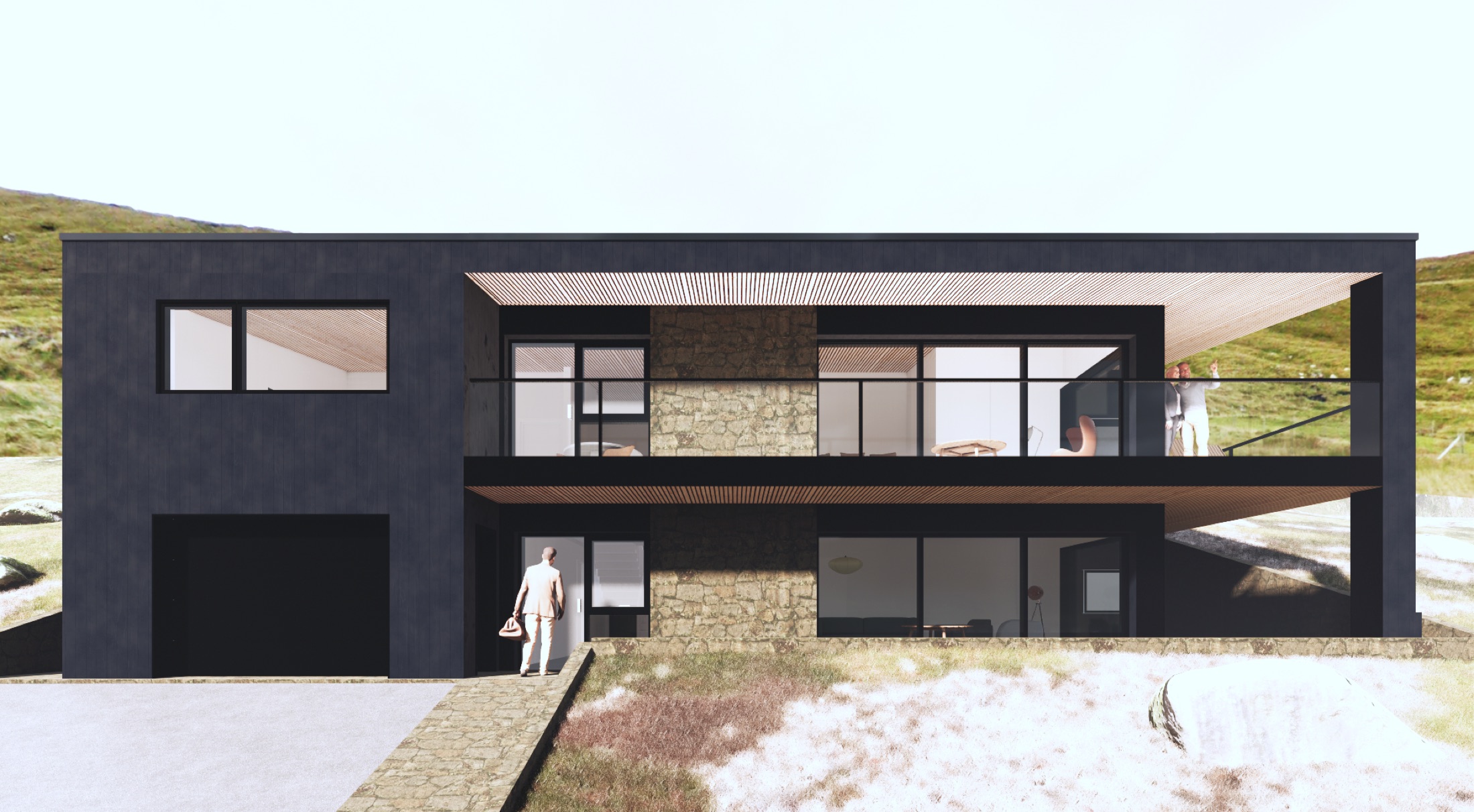 Bolig ved Undir Gøtueiði med fokus på moderne formsprog og robust funktion i et krævende klima.